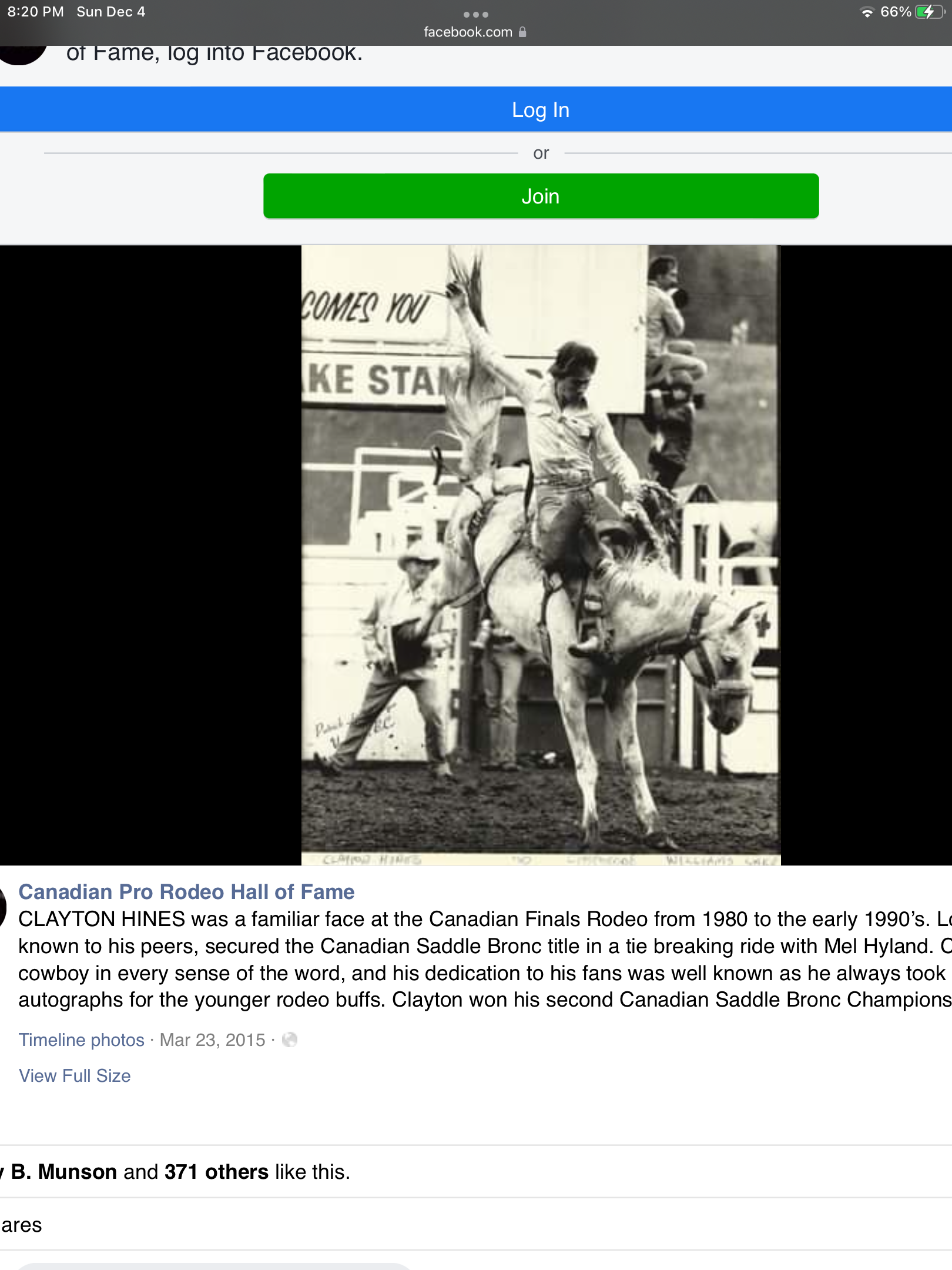 He was twice a Canadian champion Bronc rider when there were a lot of great Bronc riders in Canada.